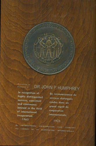 John Peters Humphrey, International Co-operation Year Citation, 1965