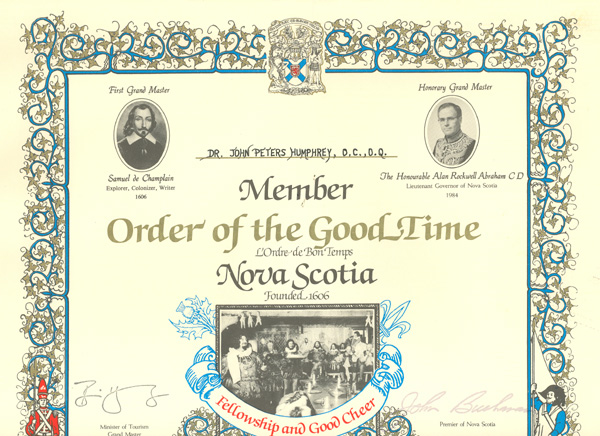 John Peters Humphrey, Order of the Good Time, n.d.