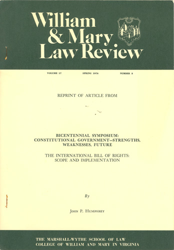 John Peters Humphrey, Journal Article, 1976