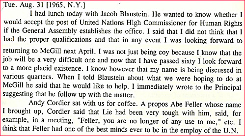John Peters Humphrey, Diary Entry on Returning to McGill, 1965