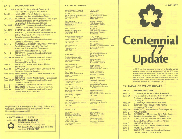 Japanese Canadian Centennial Society – Centennial 77 Update, June 1977